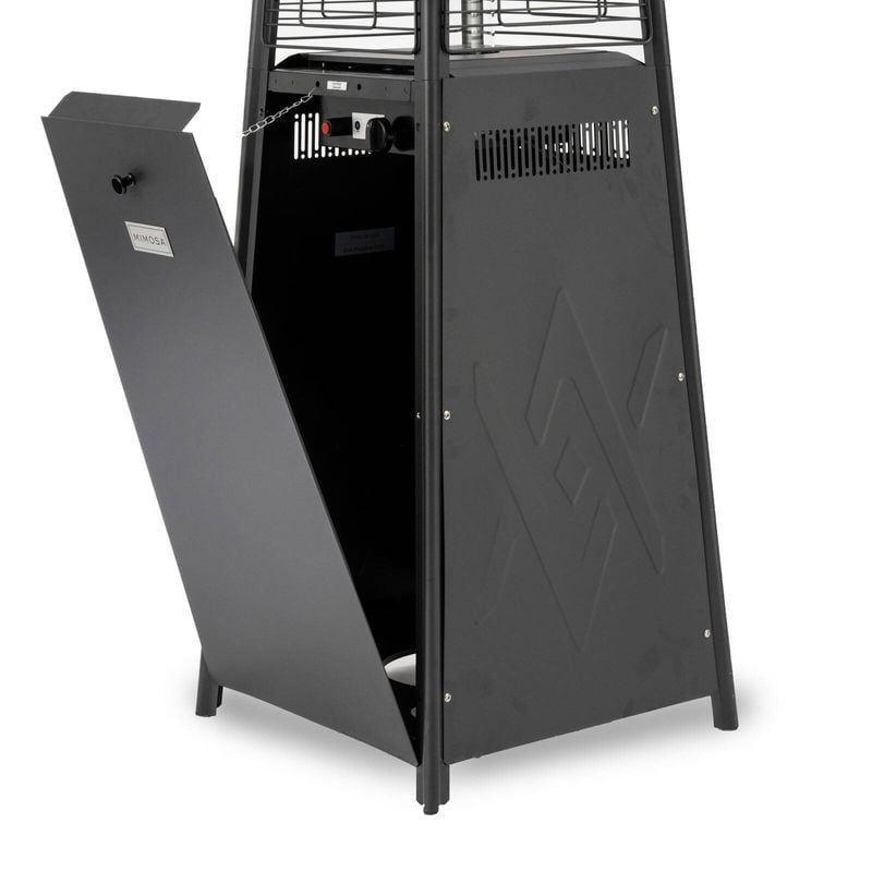 The Mimosa square gas flame heater with a quartz tube, electronic ignition, and a built-in safety guard is perfect for patios and backyards. It provides powerful warmth and a mesmerising flame, creating a cosy outdoor ambiance whilst entertaining.