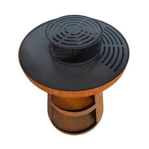 The Mimosa Rustic Plancha Firepit with Grill combines the warmth of a traditional fire pit with the versatility of a Teppanyaki-style plancha and a central grill grate. The wide steel plancha ring is perfect for searing steaks, frying eggs, or grilling vegetables, while the center grate is ideal for open-flame grilling.